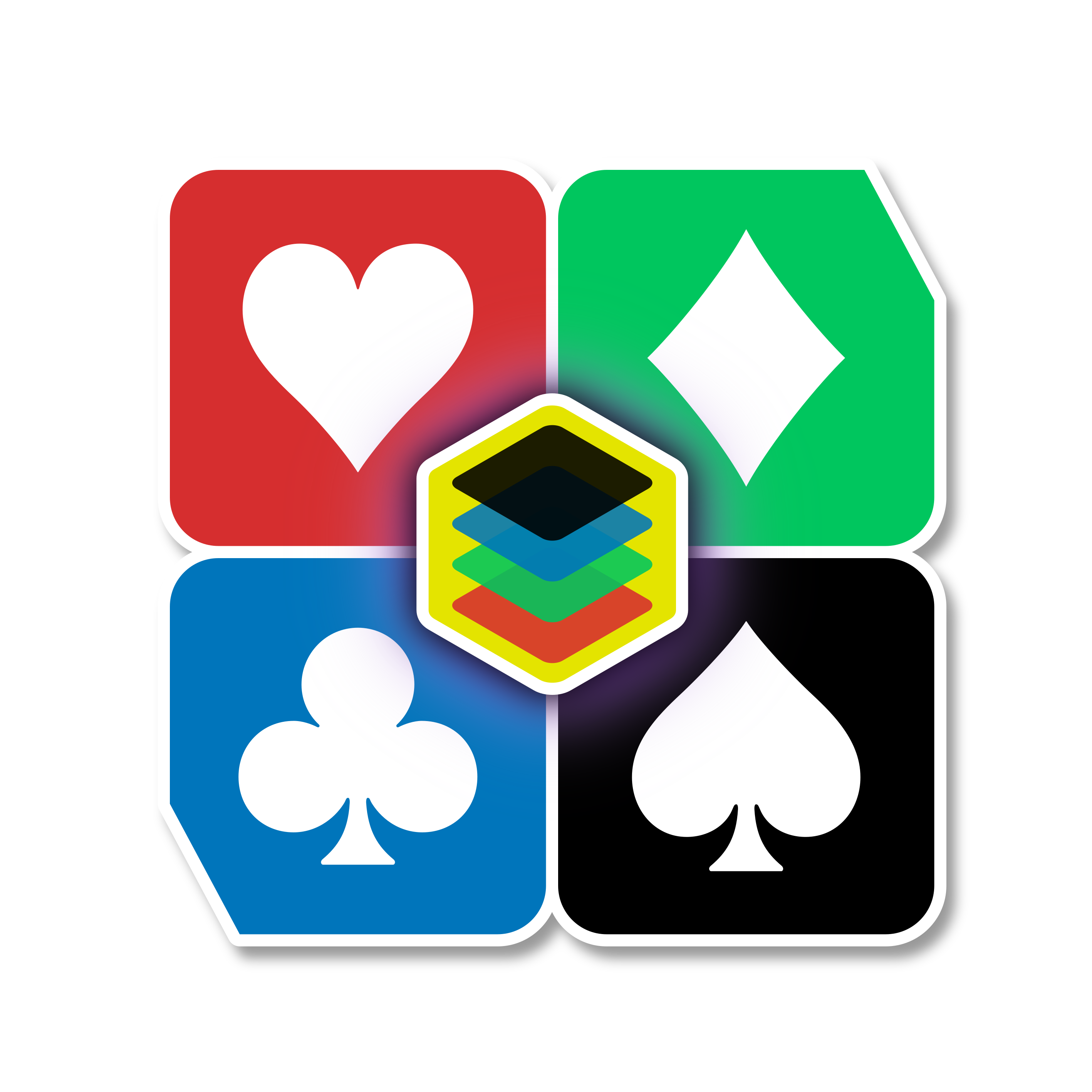 4 ranks × 4 suits × 4 colors = 64 unique cards with multi-attribute dynamics